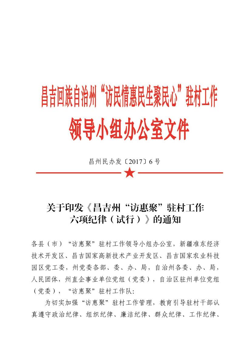 关于转发《昌吉州“访惠聚”驻村工作六项纪律的通知
